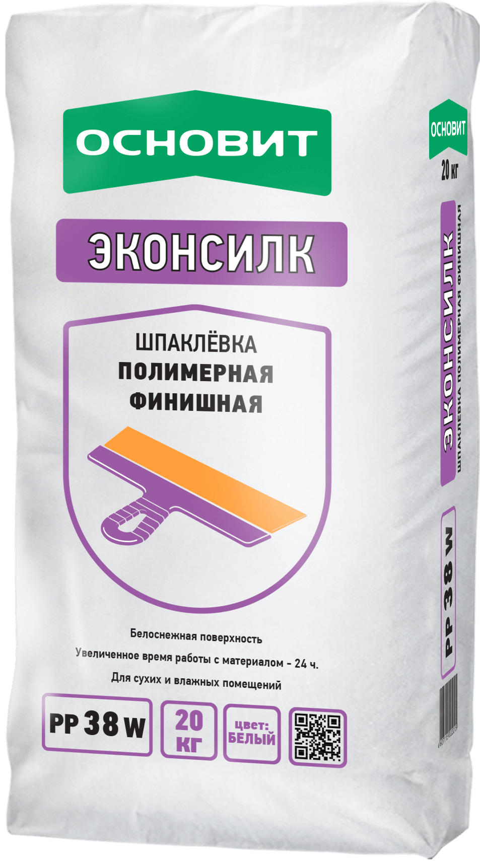 ЭКОНСИЛК PP38 W шпаклевка полимерная финишная супербелая ОСНОВИТ. Толщина слоя 0,1-5 мм