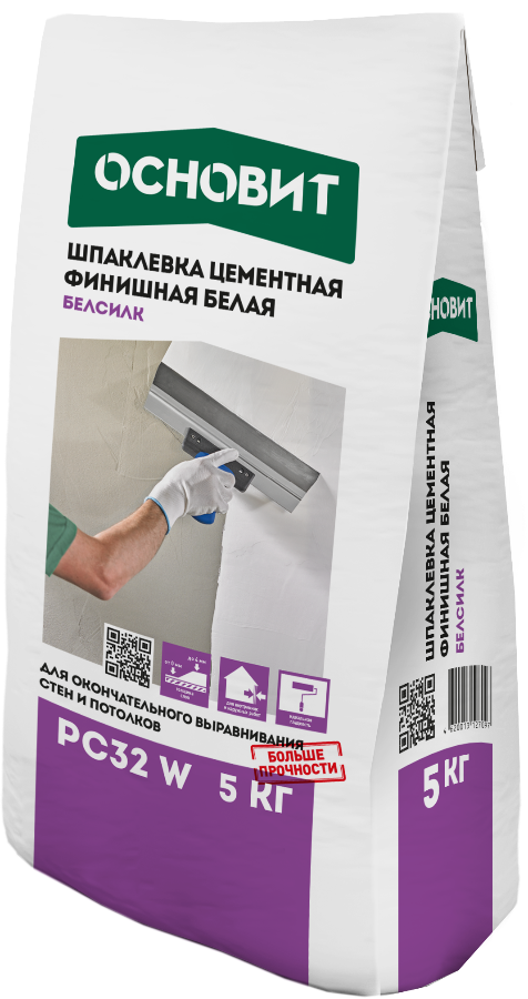 Шпаклевка ОСНОВИТ БАЗСИЛК PC30 MW предназначена для выравнивания стен и потолков в сухих и влажных помещениях, фасадов, цоколей.